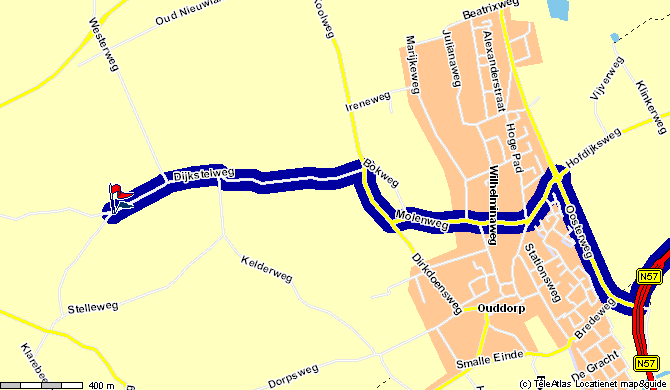 - Bij de verkeerslichten: Afslag Ouddorp, rechtsaf.